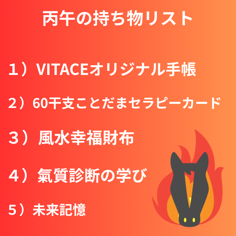 財運コンサルタント松岡紫鳳流、丙午の持ち物リストを作成しました。参考にしてくださいね。
