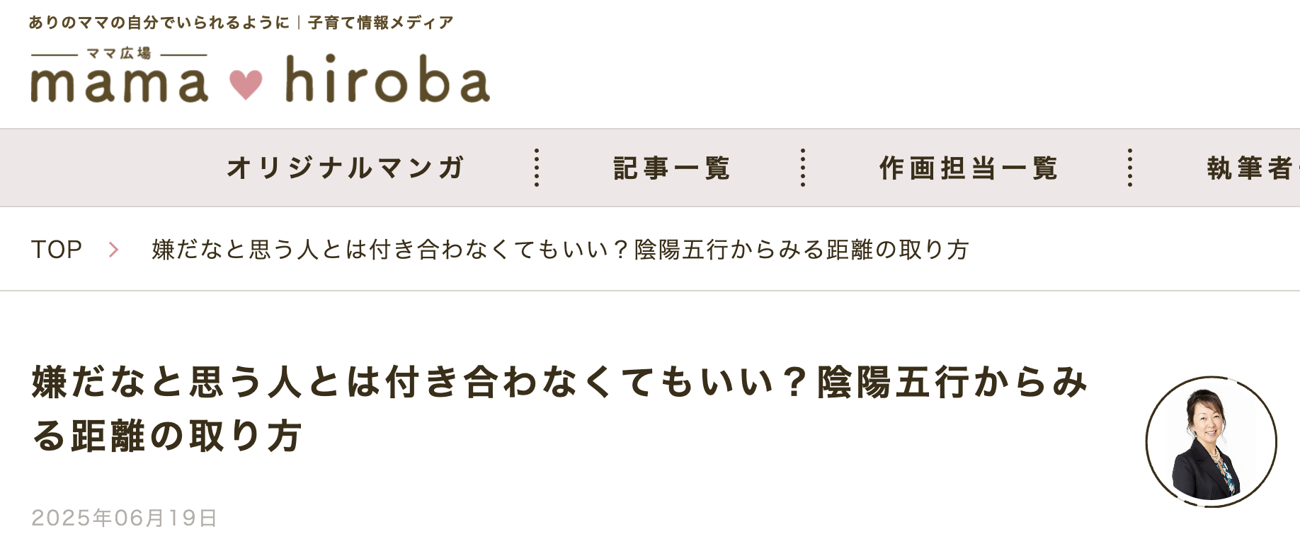 ママ広場さんにて、代表松岡美奈子の記事が掲載されています! 【メディア掲載】松岡美奈子代表による陰陽五行を活用した人間関係術がママ広場で紹介されました この度、当スクール代表取締役の松岡美奈子が、子育て情報メディア「ママ […]