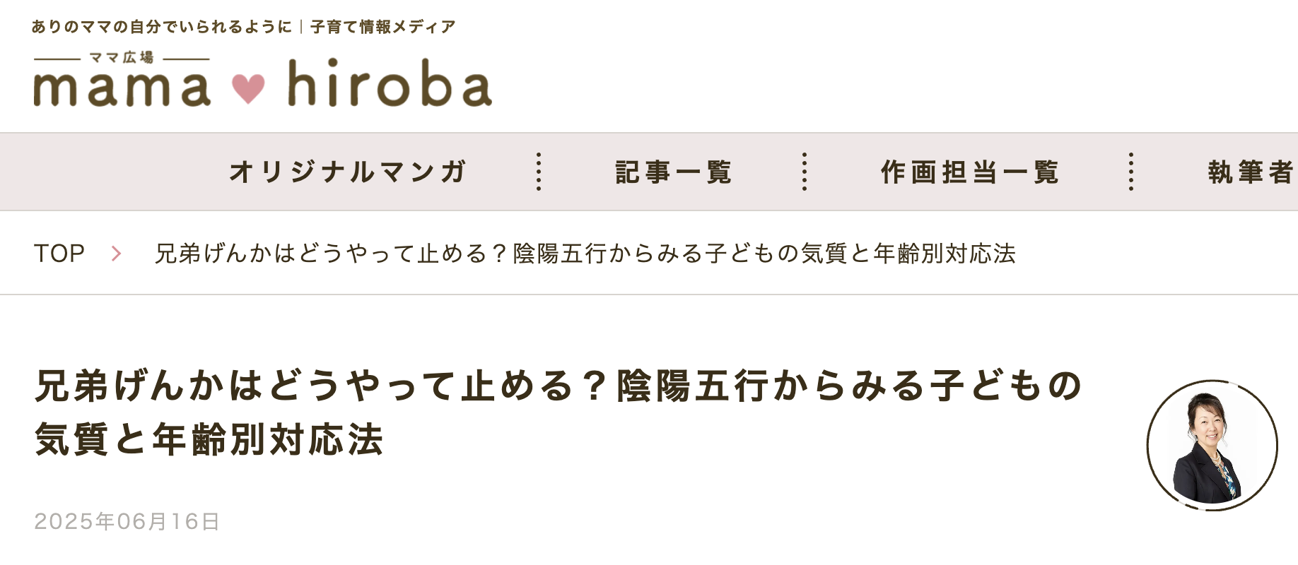 メディア掲載紹介〜どうして兄弟喧嘩するの?氣質の観点から
