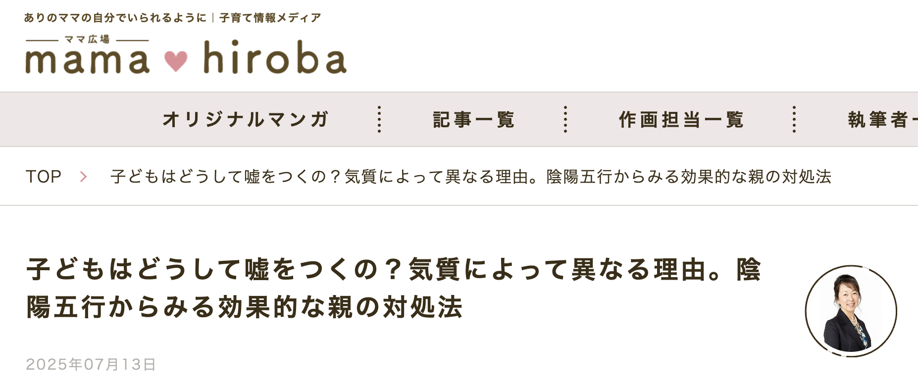 メディア掲載〜子供の嘘の対処にも氣質診断は有効なんですよ!