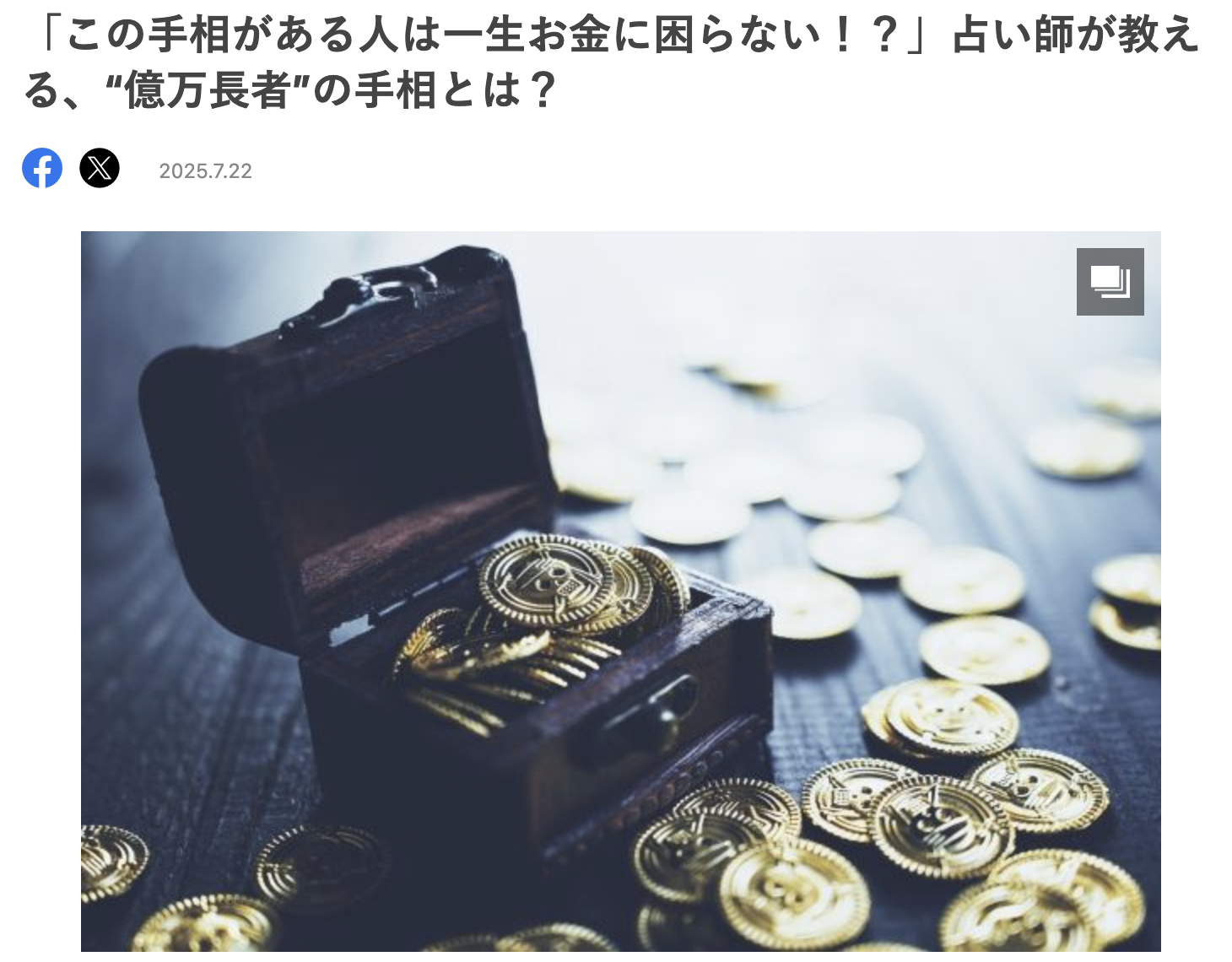 メディア掲載〜診断の現場でも実は手相、特に金運チェックしてますよ!