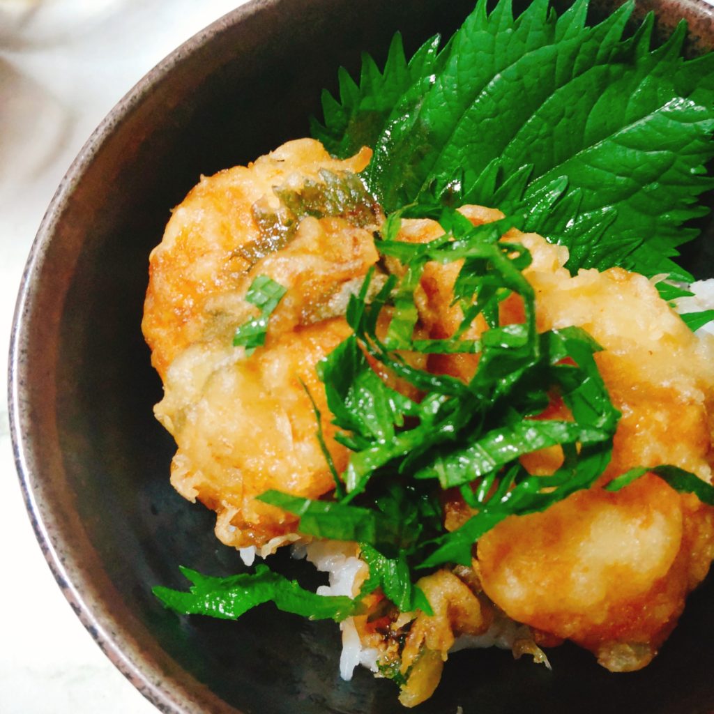 夕方のスーパーで割引でゲットした鱧の天ぷらを天丼にしてみました。